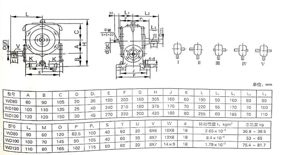 WD蝸輪減速機裝配圖和參數(shù)規(guī)格: